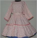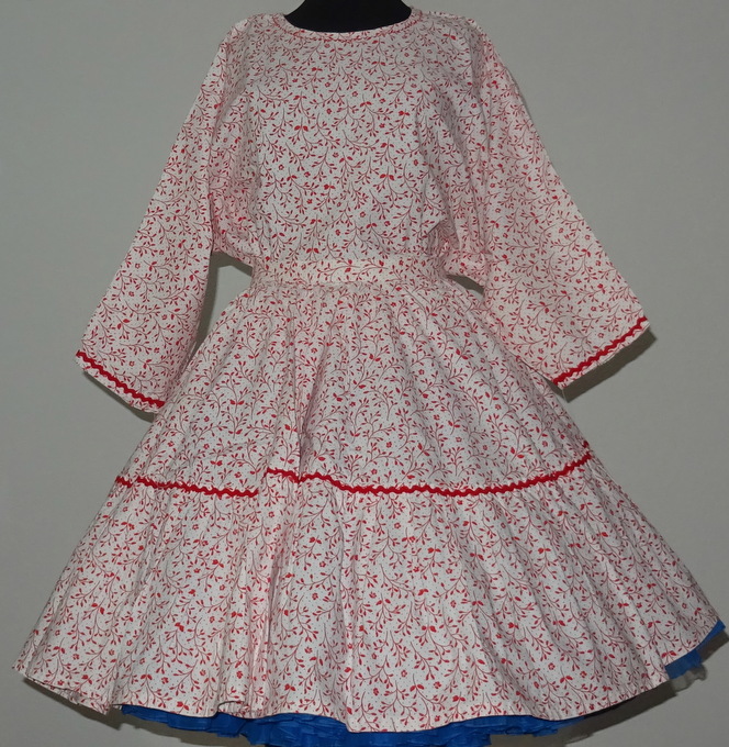 Rock: weitschwingender Tellerrock in 2 Stufen verziert mit rotem Zick Zack Band 3 cm breiter starrer Bund oben durch Knopf zu schließen und 2 mal verstellbar
