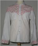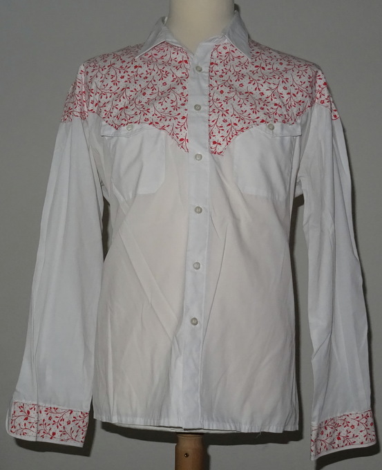 vorne und hinten spitz zulaufender Sattel normale Knöpfe 2 aufgesetzte Brusttaschen die Manschetten sind ebenfalls mit dem selben Muster benäht
