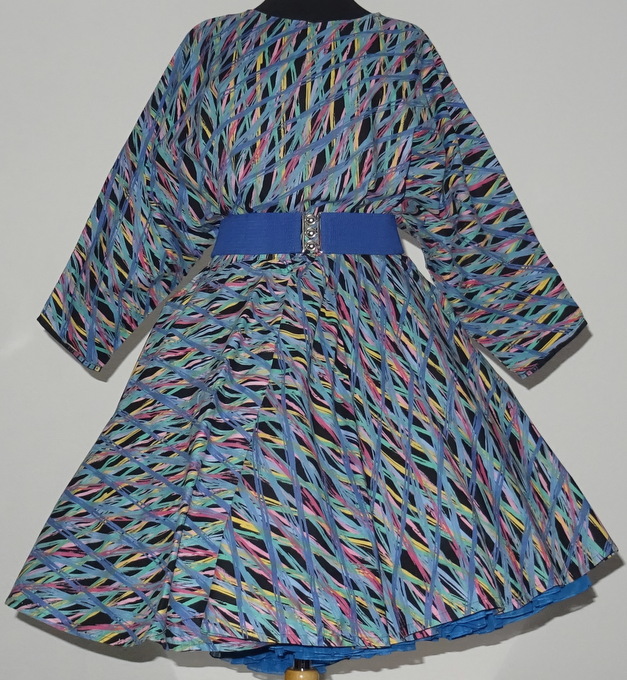 wunderschöner 3 Teiler gemustert in den Farben rauchblau, rosé und smaragdBluse:runder Halsausschnitt 43 cm halblange Fledermaus Ärmel Rock:weitschwingender Tellerrock 3 cm breiter starrer Bundoben durch Knöpfe zu schließen und 2 mal verstellbarhomemadeder 2 Teiler wird ohne Gürtel verkauft. Den passenden Gürtel finden sie in unserer Gürtel KategorieMaterial:Mischgewebeguter Zustand