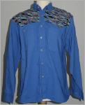 dazu wurde auf einem royalblauen Herrenhemd der passende Sattel angebrachtvorne und hinten spitz zulaufender Sattelnormale Knöpfe2 aufgesetzte BrusttaschenMaterial:Mischgewebe