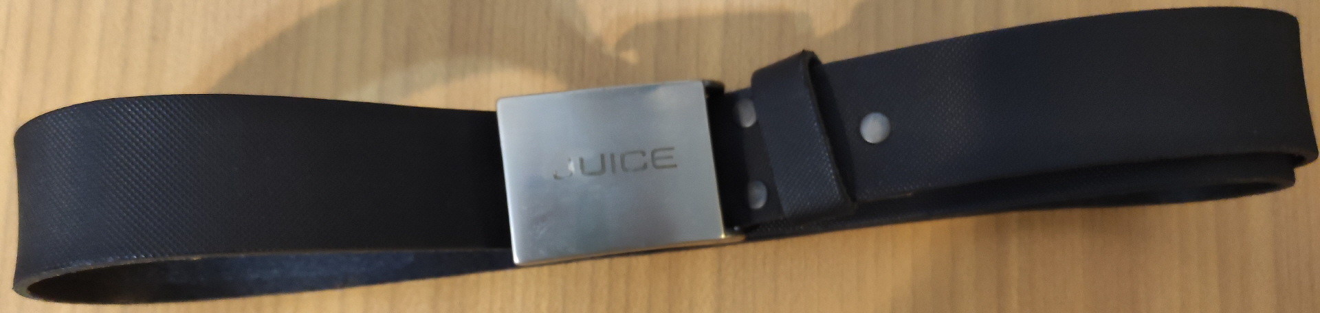 Ledergürtel Schwarz Silberfarbener Buckle mit Aufschrift Juice. (Buckle kann nicht gewechselt werden) Breite: 3,5 cm Länge: 80 cm bis 94 cm