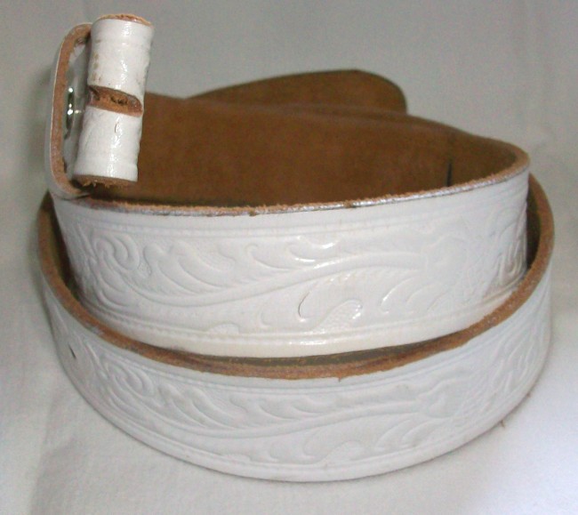 weisser Leder-Gürtel mit 2 Druckknöpfen für Bucklegeprägte Oberfläche3,5 cm breitLänge von 99 cm - 116 cm