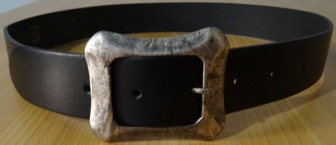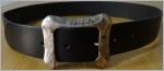 schwarzer Echtleder-Gürtelsilberfarbene Schliesse von 7,5 cm x 6 cm4 cm breitLänge von 76 cm - 91 cmTW: 85NEU