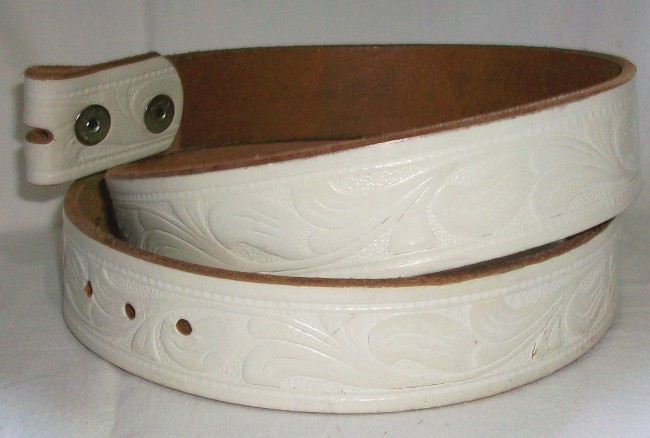 weisser Leder-Gürtel mit geprägter Oberfläche mit 2 Druckknöpfen für Buckle3,5 cm breitLänge von 94 cm - 110 cm
