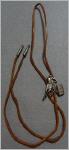 Bolo Tie mit silberfarbenem Reiter und Fass4,5 cm Höhe3,5 cm Breitebraune Lederkordel mit silberfarbenen SpitzenNEU