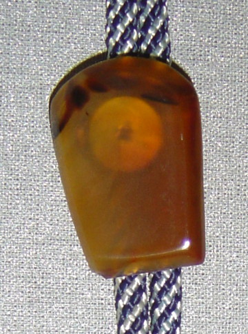 Bolo Tie mit schwarz/weisser Kordel und silberfarbene SpitzenMotiv: Brauner Stein mit Einschlüssen (wie Bernstein)Neu