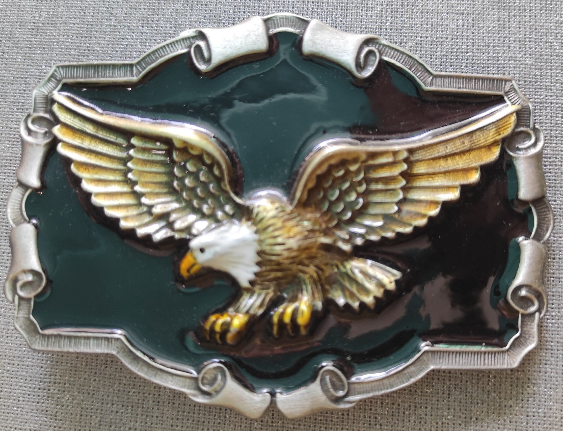 schönes silberfarbenes Belt Buckle in der Mitte ein goldfarbener Adler auf schwarzem Hintergrund Größe Buckle: 8 cm x 6,5 cm gür Gürtelbreite: 4 cm