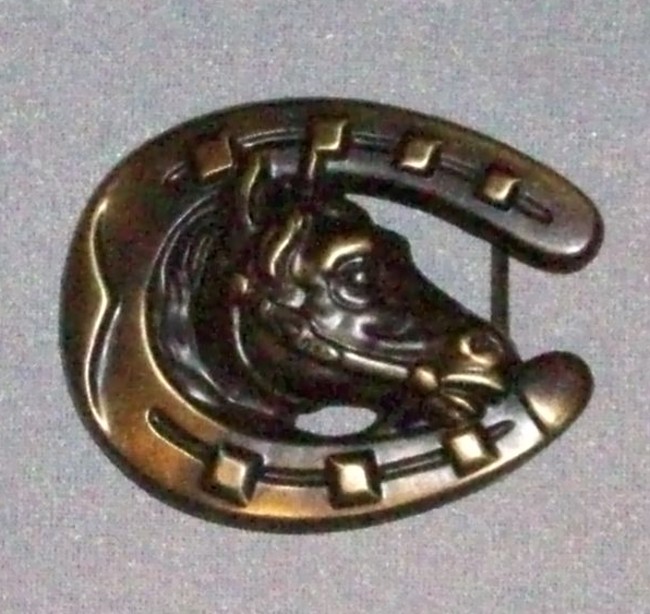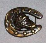 silberfarbener, mattierter Pferdekopf in einem Hufeisen für Gürtelbreite 4,5 - 5 cm Grösse 7 x 7,5 cm Neu