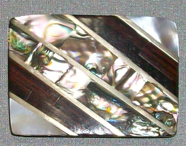 sehr schönes Buckle mit Perlmutt Einlegearbeitin braun-weiss-perlmutt7,5 cm x 5,5 cmfür Gürtelbreite 4 cm topp Zustand