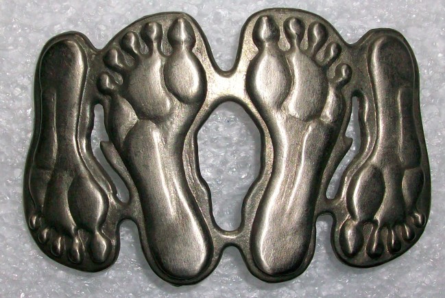 matt silberfarbenes Buckle "Füsse"für 5 cm Gürtelbreite Grösse 11,5 x 7 cm Neu