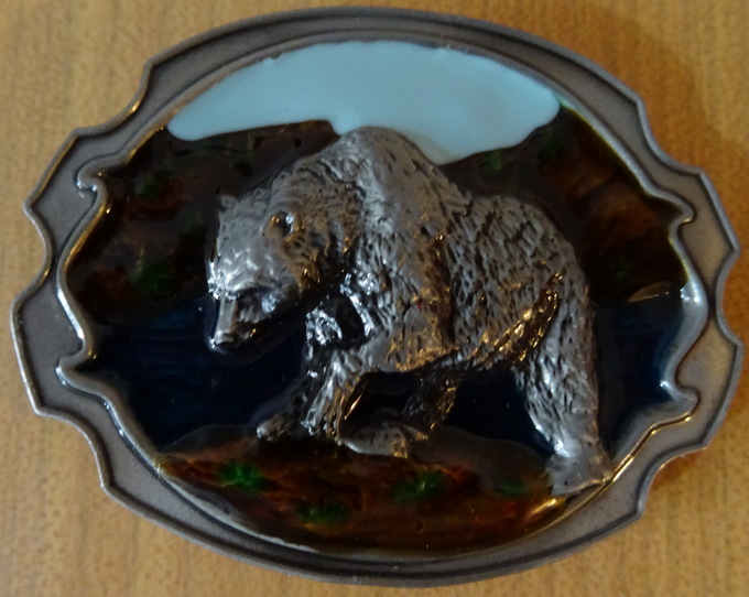 wunderschönes Belt-Bucklesilberfarbener, 3-dimensionaler Bär in NaturumgebungGrösse 8 x 6 cmfür Gürtelbreite 4 cm NEU