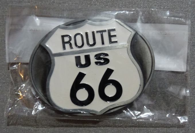 wunderschönes ovales silberfarbenes Belt-Buckle mit aufgesetztem weissem Route 66-ZeichenGrösse Buckle: 7,5 cm x 6 cm für Gürtelbreite: 4,5 cm NEU