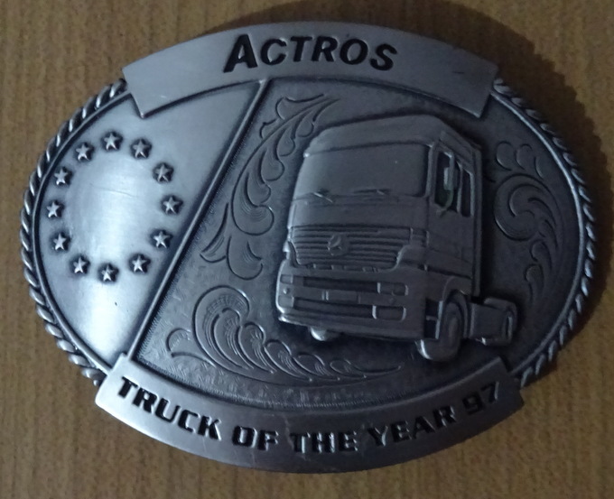 wunderschönes ovales silberfarbenes Belt-Buckle mit aufgesetztem LKW "ACTROS"Grösse Buckle: 9 cm x 7 cm für Gürtelbreite: 4 cm NEU