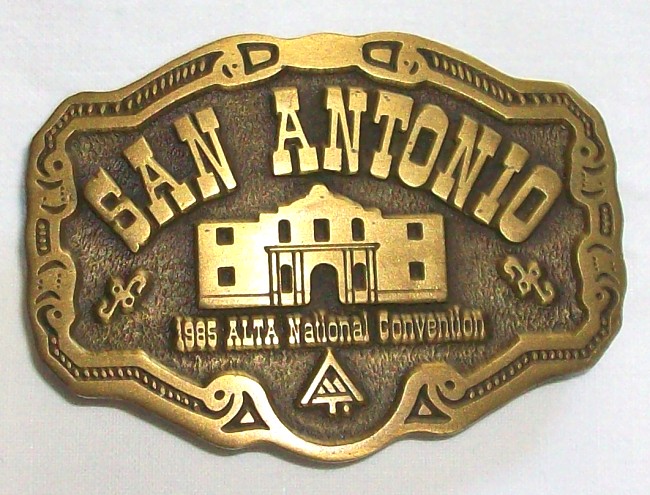 schönes goldfarbenes BuckleInschrift: San Antonio - 1985 National ConventionGrösse 7 x 5 cmfür Gürtelbreite 4,5 cm Neu