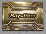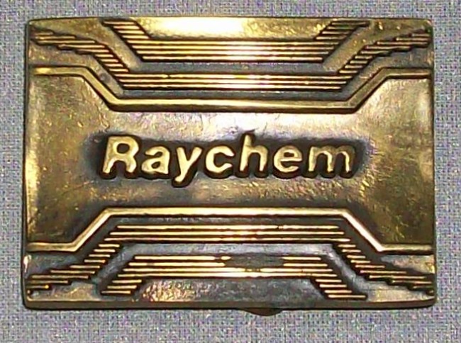 messingfarbenes Buckle mit der Aufschrift Raychem7 cm x 5 cmfür Gürtelbreite 4 cm