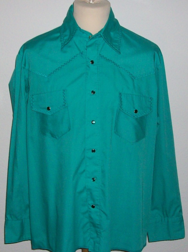 türkisfarbenes Hemdtürkisfarbene Perlmuttdruckknöpfe2 aufgesetzte BrusttaschenSattel, Kragen & Brusttaschen grün abgestickttopp Zustand