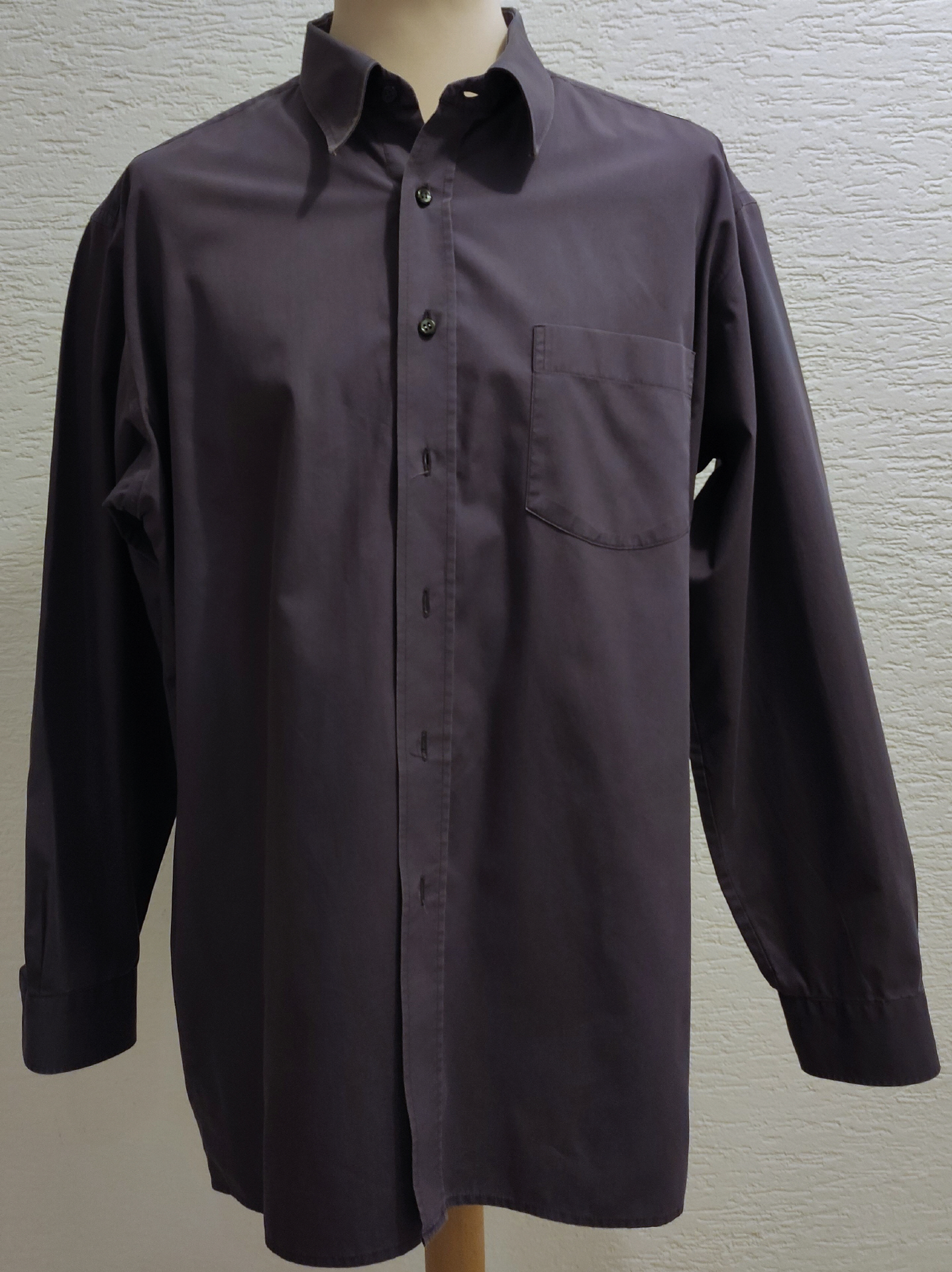 aubergines Herrrenhemd der Marke Perfect Line Gr. XL (43/44)1 aufgesetzte Brusttasche gerade geschnittennormale dunkelgraue KnöpfeMaterial:Mischgewebe bügelfrei