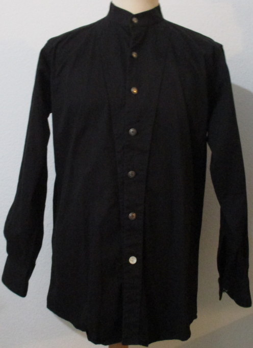 schwarzes Hemd mit 3,5 cm Stehkragenvorne geknüpft mit schön verzierten silberfarbenen Knöpfen100 % Cottonguter Zustand