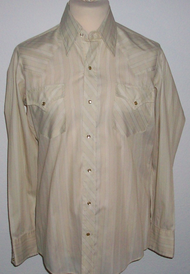 beigefarbenes Hemd mit zarten Streifengeigefarbene Perlmuttdruckknöpfe2 aufgesetzte Brusttaschentopp Zustand