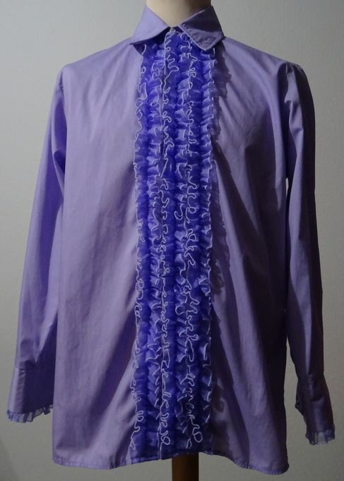 lilafarbenes Hemdauf der Brust mit interessanten Rüschchen verziertebenso an den Manschettenverdeckte Knofleisteweisse Perlmuttdruckknöpfeneuwertig (noch nicht getragen)