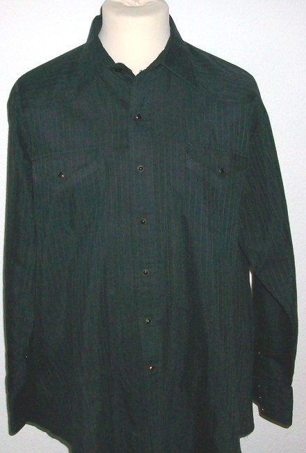 schwarzes Hemd in sich gestreiftUS-Grösse 17-352 aufgesetzte Brusttaschenschwarze Perlmutt Druckknöpfesehr guter Zustand