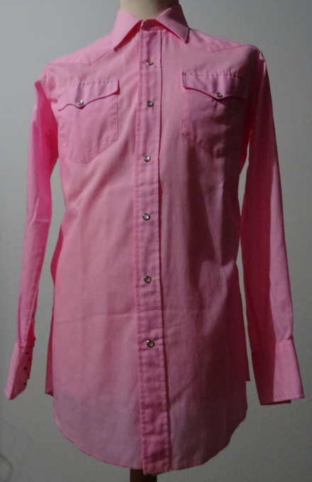 rosafarbenes Hemd 2 aufgesetzte Brusttaschenweisse Perlmuttdruckknöpfevorne und hinten mit spitz zulaufendem SattelMaterial:65 % Polyester35 % Cottonwie Neu