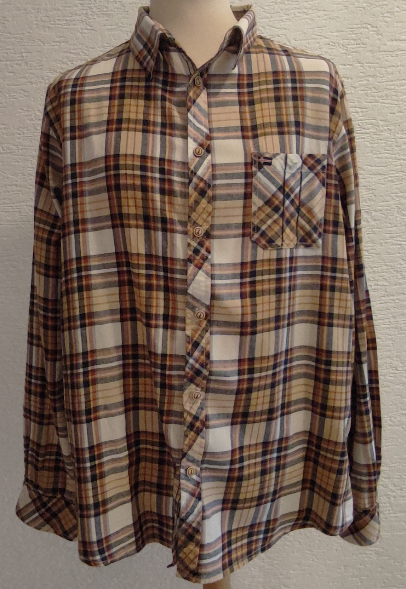 Hemd kariiert in ocker, rost und creme der Marke Van Linnen Gr. XXL1 aufgesetzte Brusttasche mit hellbraunen KnöpfenMaterial: 100% Baumwolle2 Ersatzknöpfesehr guter Zustand