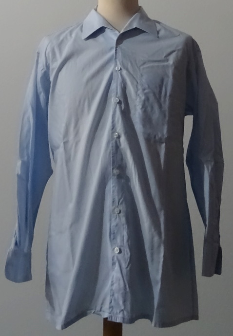 hellblaues Hemd mit Streifenstruktur1 aufgesetzte Brusttaschenormal geknöpftMaterial:Mischgewebe (hoher Baumwollanteil)guter Zustand