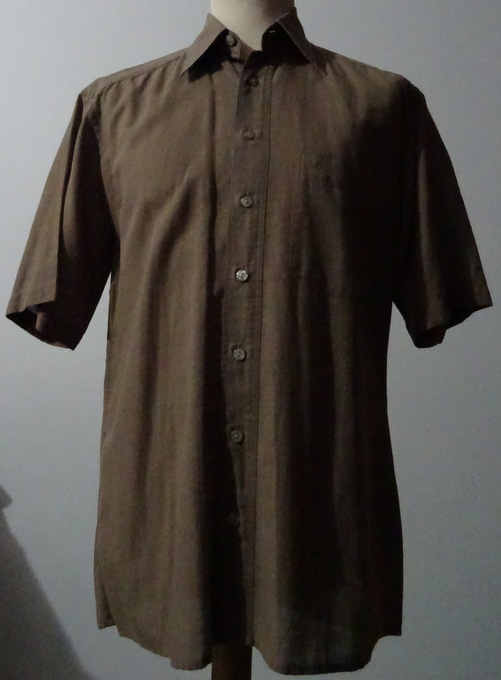 braunes Hemdmit 1 aufgesetzten Brusttaschennormale braun silbrig glänzende KnöpfekurzarmMischgewebeguter Zustand