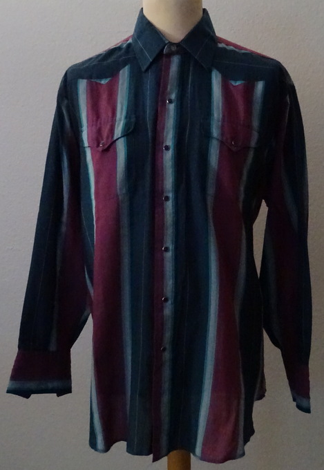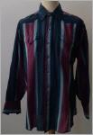 vertikal gestreiftes Hemd in den Farben anthrazit, brombeere etc.2 aufgesetzte Brusttaschendunkelblaue PerlmuttdruckknöpfeMaterial:65 % Polyester35 % Cottonguter Zustand