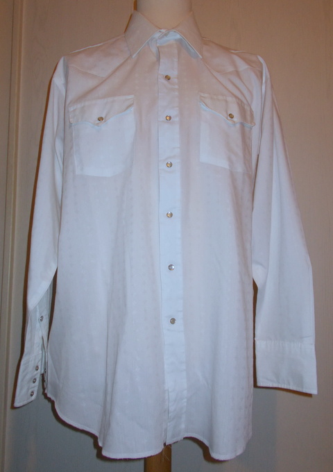 Herrenhemd weißmit bedruckten silbrig glänzenden Rautenweiße Perlmuttknöpfe2 aufgesetzte BrusttaschenMischgewebesehr guter Zustand