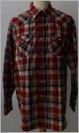 kariertes Hemd, dominierende Farbe ist weinrot2 aufgesetzte Brusttaschenweisse PerlmuttdruckknöpfeMaterial:65 % Polyester35 % CottonNeu, Ausstellungsmodell