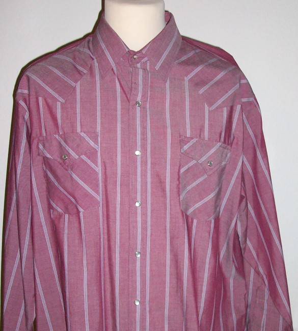 gestreiftes in den Farben helles brombeermit blauen Streifenweisse Perlmuttdruckknöpfe2 aufgesetzte BrusttaschenGrösse XLneu - Ausstellungsmodell65% Polyester, 35% Cotton