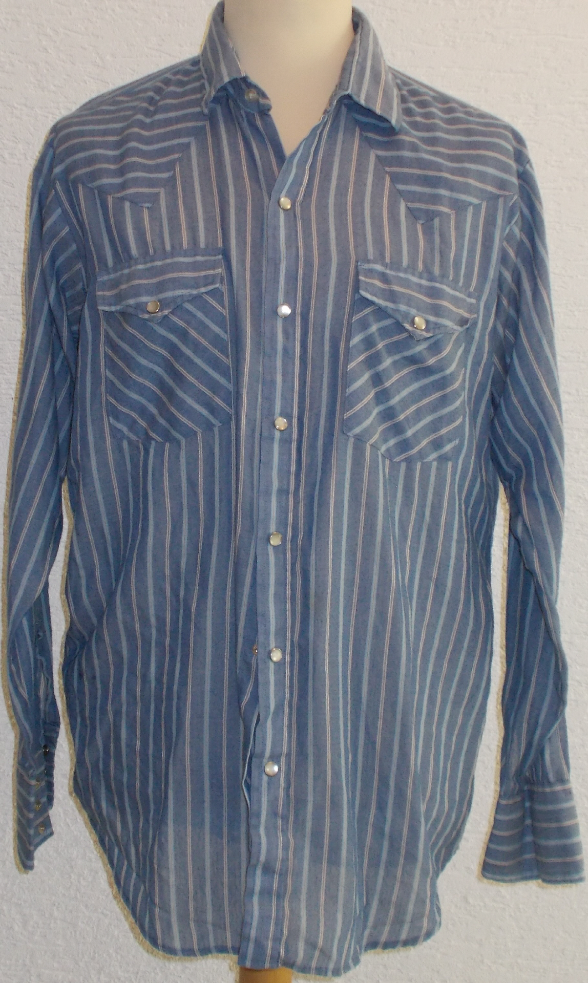 rauchblau gestreiftes Hemd der Marke DeeCee Rangers Gr. Lweiße Perlmutdruckknöpfe2 aufgesetzte Brusttaschen mit ebenfalls 2 Perlmutdruckknöpfensehr guter Zustand!