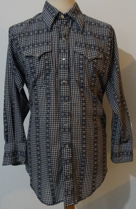 schwarz-weiss kariertes Hemd mit verzierten Streifen2 aufgesetzte Brusttaschenweisse Perlmuttdruckknöpfe65 % Polyester35 % Cottonsehr guter Zustand