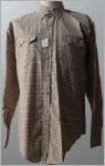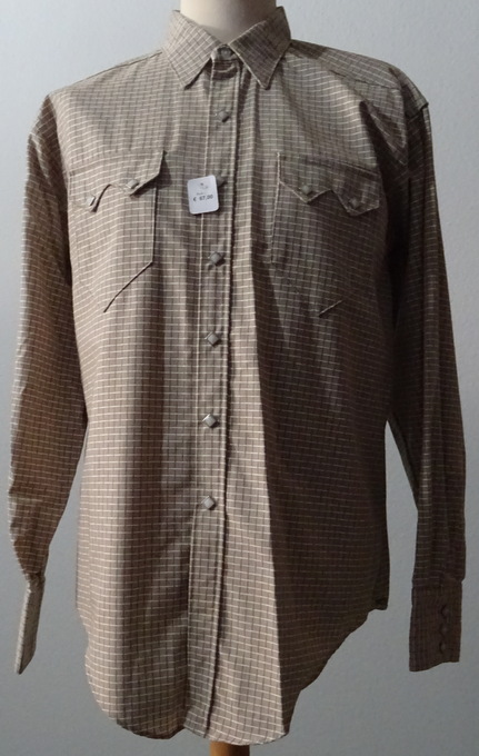 hellbraunes Hemd mit weissen und beigefarbenen Karos2 aufgesetzte Brusttaschenweisse rautenförmige Perlmuttdruckknöpfehinten spitz zulaufender SattelMaterial:100 % CottonNEU