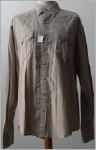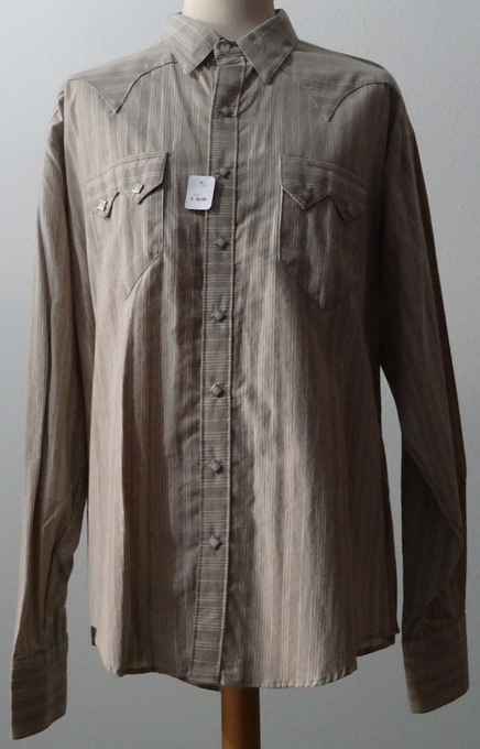 hellbraunes Hemd mit weissen Streifen2 aufgesetzte Brusttaschenweisse rautenförmige Perlmuttdruckknöpfevorne und hinten spitz zulaufender SattelMaterial:100 % CottonNEU