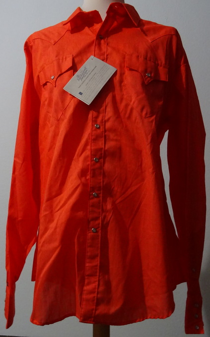 orangefarbenes Hemd2 aufgesetzte Brusttaschenweisse Perlmuttdruckknöpfehinten und vorne spitz zulaufender SattelMaterial:50 % Polyester50 % CottonNEU NEU NEU