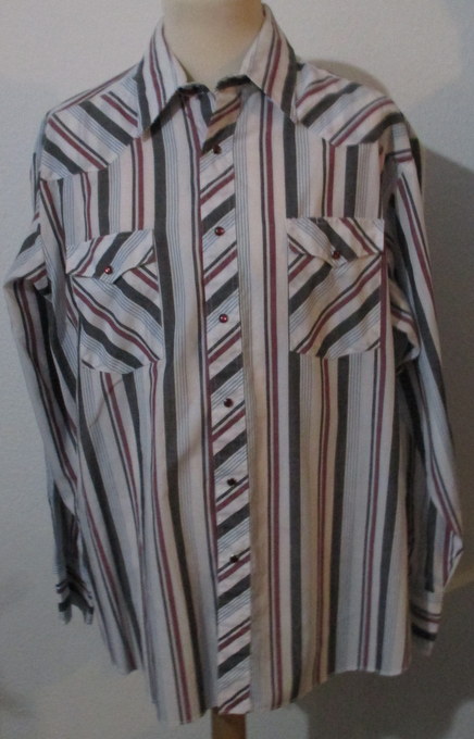 weisses Hemd mit verschiedenfarbenen Streifen 2 aufgesetzte Brusttaschenbordeauxfarbenen Perlmuttdruckknöpfe65 % Polyester35 % Cottonguter Zustand