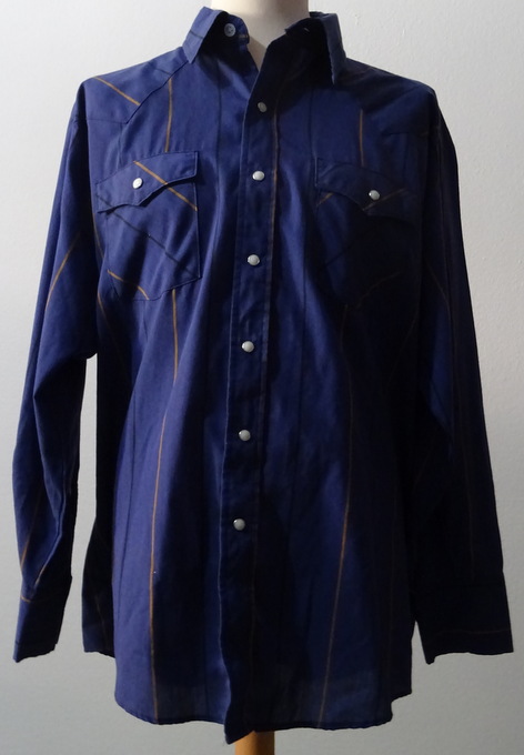 pflaumenfarbiges Hemd mit Streifen in hellbraun und schwarz2 aufgesetzte Brusttaschenweisse Perlmuttdruckknöpfevorne und hinten spitz zulaufender SattelMaterial:Mischgewebegebraucht, sehr guter Zustand