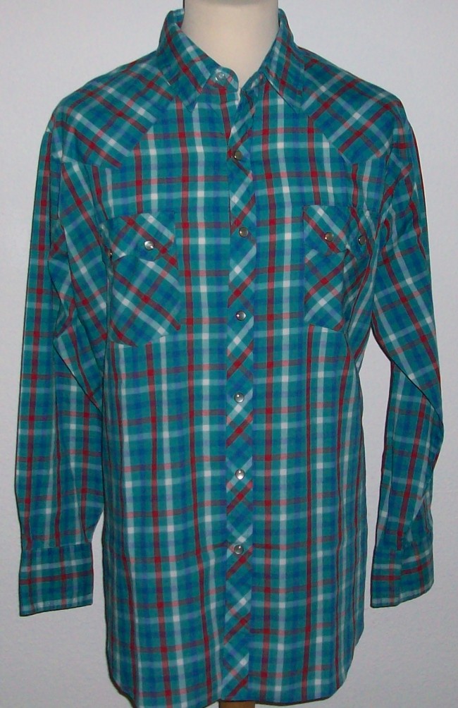 meergrünes Hemd weiss, blau, rot kariertGrösse XL2 aufgesetzte Brusttaschenweisse Perlmuttdruckknöpfesehr guter Zustand65% Polyester, 35% Cotton