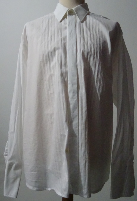 weisses Smokinghemd im Hemd weisse strukturierte Streifen auf der Brustverdeckte KnopfleisteManschetten zum umstülpen (Manschettenknöpfe werden benötigt)Material:100 % CottonTOP Zustand, wie NEU(Hemd ist frisch gewaschen, aber nicht gebügelt)