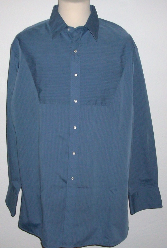 rauchblaues Hemd, in sich strukturiert in Streifen Grösse XL 2 aufgesetzte Brusttaschen vorne grosser eingenähter Sattel im John-Wayne-Stil hinten normaler Sattel