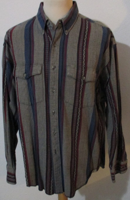 graues Hemdmit roten und blauen Streifen2 aufgesetzte BrusttaschenButton Down Kragen100 % Cottonguter Zustand