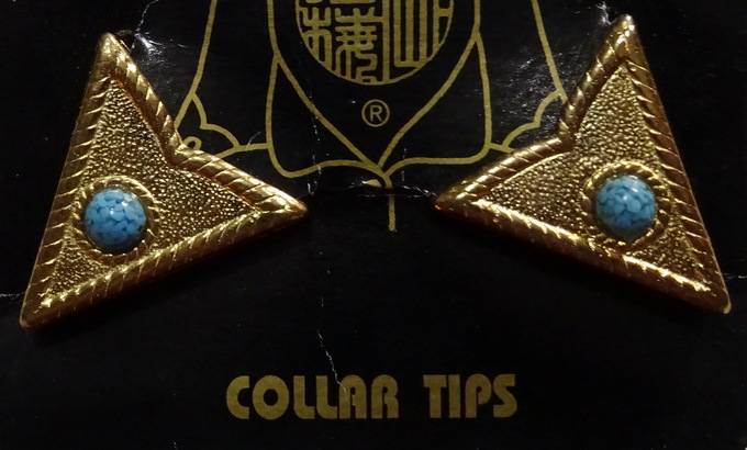 goldfarbene Kragenecken mit türkisfarbenem Stein (3,5 x 3 cm)SchraubverschlussNeu