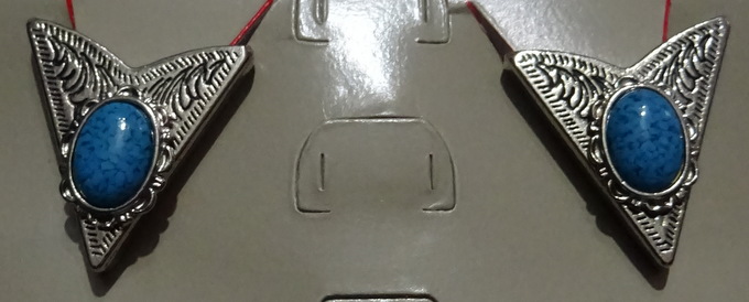 silberfarbene Kragenecken mit großem aufgesetztem türkisfarbenem Stein (3 x 3 cm)Schraubverschluss3x vorhandenNeu