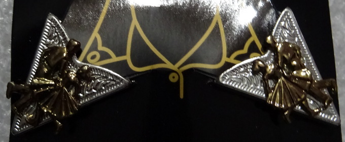 silberfarbene Kragenecken mit goldfarbenem aufgesetztem Tanzpaar (3 x 3 cm)Schraubverschluss2x vorhandenNeu
