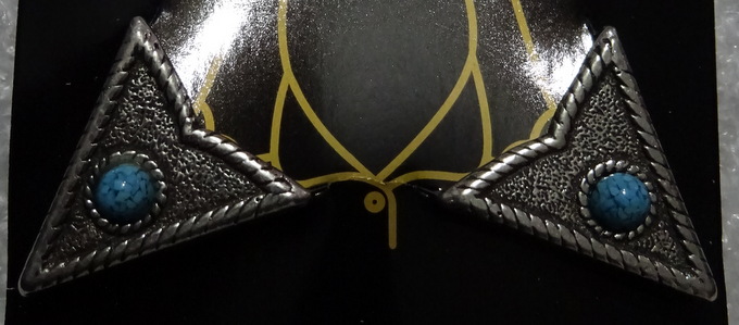 silberfarbene Kragenecken mit aufgesetztem türkisfarbenem Stein (3 x 3 cm)SchraubverschlussNeu