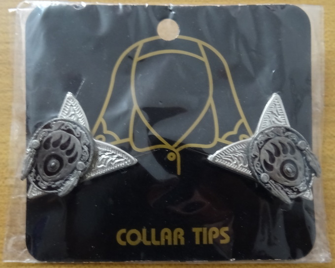 silberfarbene Kragenecken mit aufgesetzter Bärenpfote und Indianerschmuck (2,5 x 3 cm)SchraubverschlussNeu