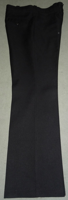 schwarze Tanzhose Bund versehen mit 7 Gürtelschlaufenvorne zwei Eingrifftaschenhinten zwei Eingrifftaschen mit Laschen zu schließen und schwarze Perlmuttdruckknöpfenmade in USAMaterial:100 % Polyesterguter Zustand